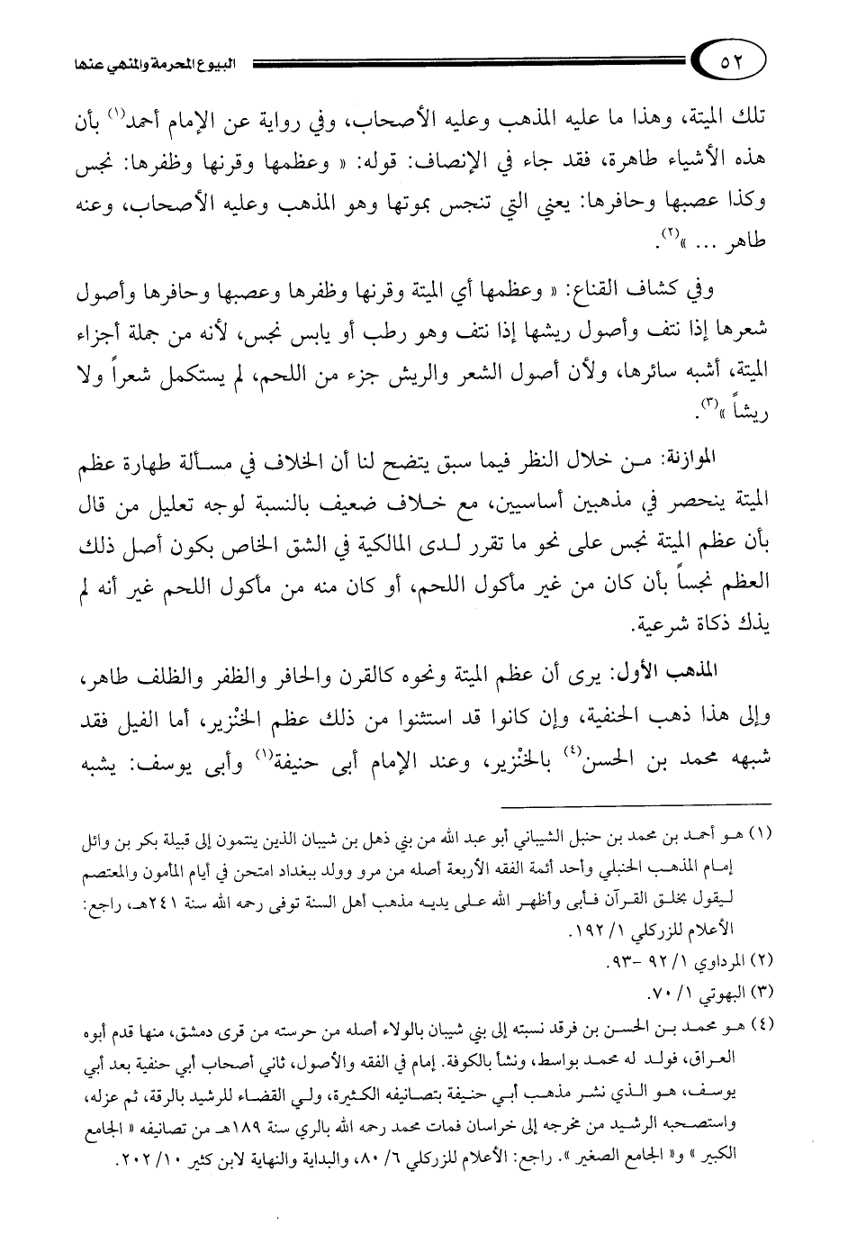 المذهب الأول: يرى أن عظم الميتة ونحوه كالقرن والحافر والظفر والظلف طاهر، وإلى هذا ذهب الحنفية، وإن كانوا قد استثنوا من ذلك عظم الخنْزير، أما الفيل فقد شبهه محمد بن الحسن4 بالخنْزير، وعند الإمام أبى حنيفة5 وأبى يوسف: يشبه