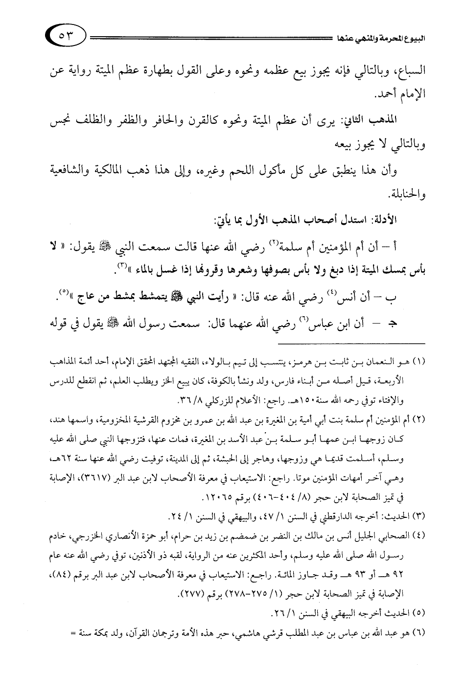 أ - أن أم المؤمنين أم سلمة1 رضي الله عنها قالت سمعت النبي صلى الله عليه وسلم يقول: "لا بأس بمسك الميتة إذا دبغ ولا بأس بصوفها وشعرها وقرونها إذا غسل بالماء" 2.