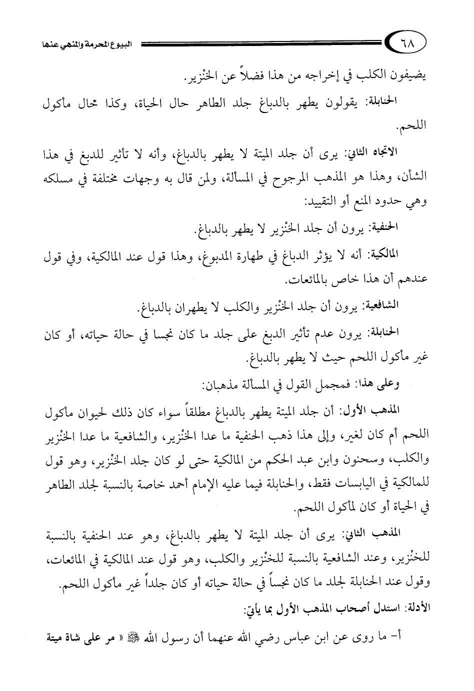 أ- ما روى عن ابن عباس رضي الله عنهما أن رسول الله صلى الله عليه وسلم "مر على شاة ميتة