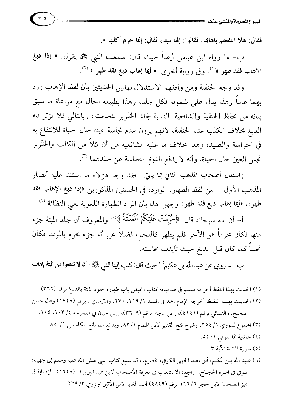ب- ما روي عن عبد الله بن عكيم6 حيث قال: كتب إلينا النبي صلى الله عليه وسلم "أن لا تنتفعوا من الميتة بإهاب