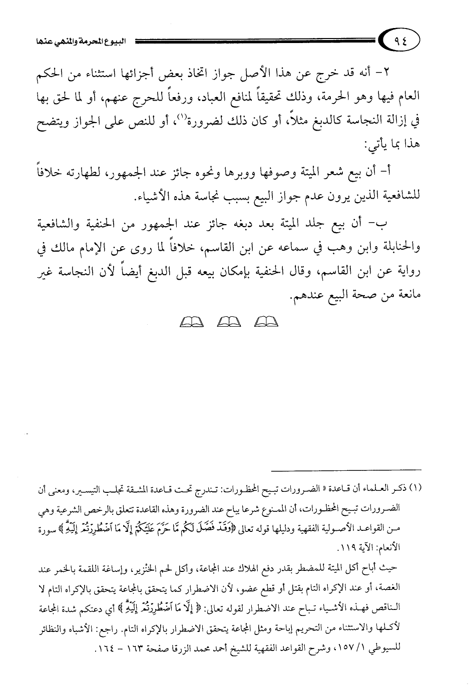 ب- أن بيع جلد الميتة بعد دبغه جائز عند الجمهور من الحنفية والشافعية والحنابلة وابن وهب في سماعه عن ابن القاسم، خلافاً لما روى عن الإمام مالك في رواية عن ابن القاسم، وقال الحنفية بإمكان بيعه قبل الدبغ أيضاً لأن النجاسة غير مانعة من صحة البيع عندهم.