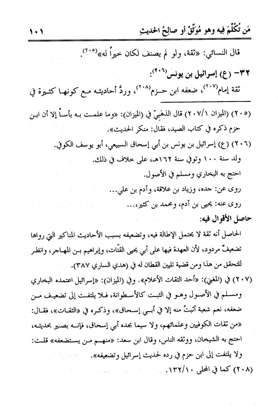 3 في المغني: «أحد الثقات الأعلام» . وفي الميزان: «إسرائيل اعتمده البخاري ومسلم في الأصول وهو في الثبت كالأسطوانة، فلا يلتفت إلى تضعيف من ضعفه، نعم شعبة أثبتُ منه إلا في أبي إسحاق» ، وذكره في «الثقات» ، فقال: «من ثقات الكوفيين وعلمائهم، ولا سيما بجده أبي إسحاق، فإنه بصير بحديثه، احتج به الشيخان، ووثقه الناس، وقال ابن سعد: «منهم من يستضعفه» قلت: ولا يلتفت إلى ابن حزم في رده لحديث إسرائيل وتضعيفه» .