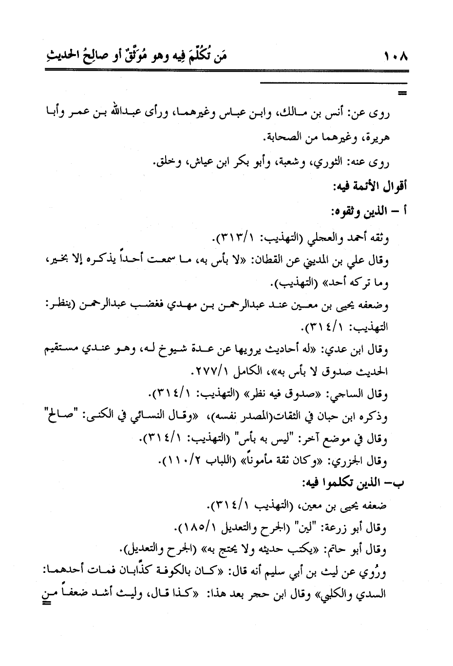 وقال أبو حاتم: «يكتب حديثه ولا يحتج به» الجرح والتعديل.