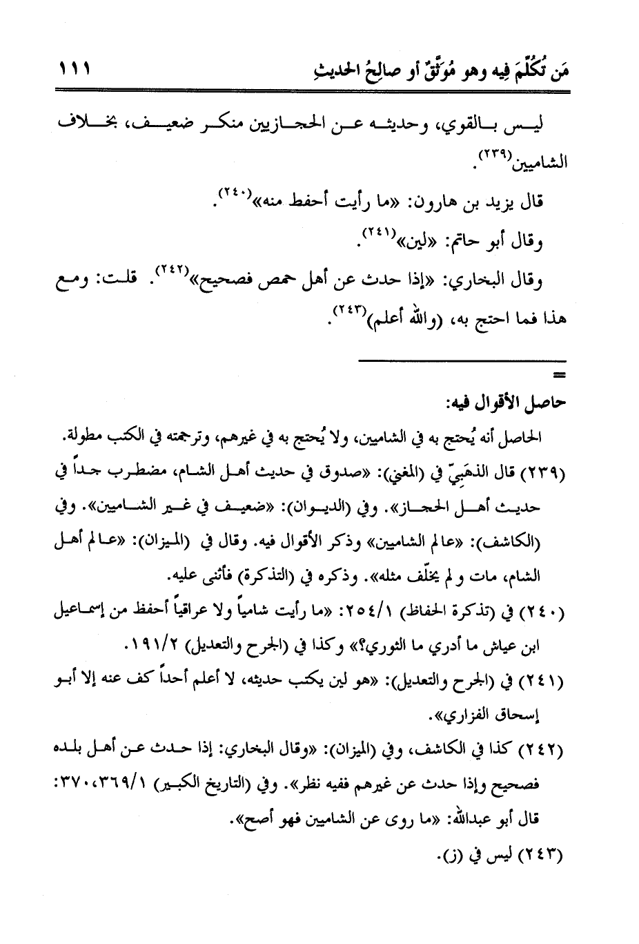 2 في تذكرة الحفاظ 1/254: «ما رأيت شامياً ولا عراقياً أحفظ من إسماعيل ابن عياش ما أدري ما الثوري؟» وكذا في الجرح والتعديل 2/191.