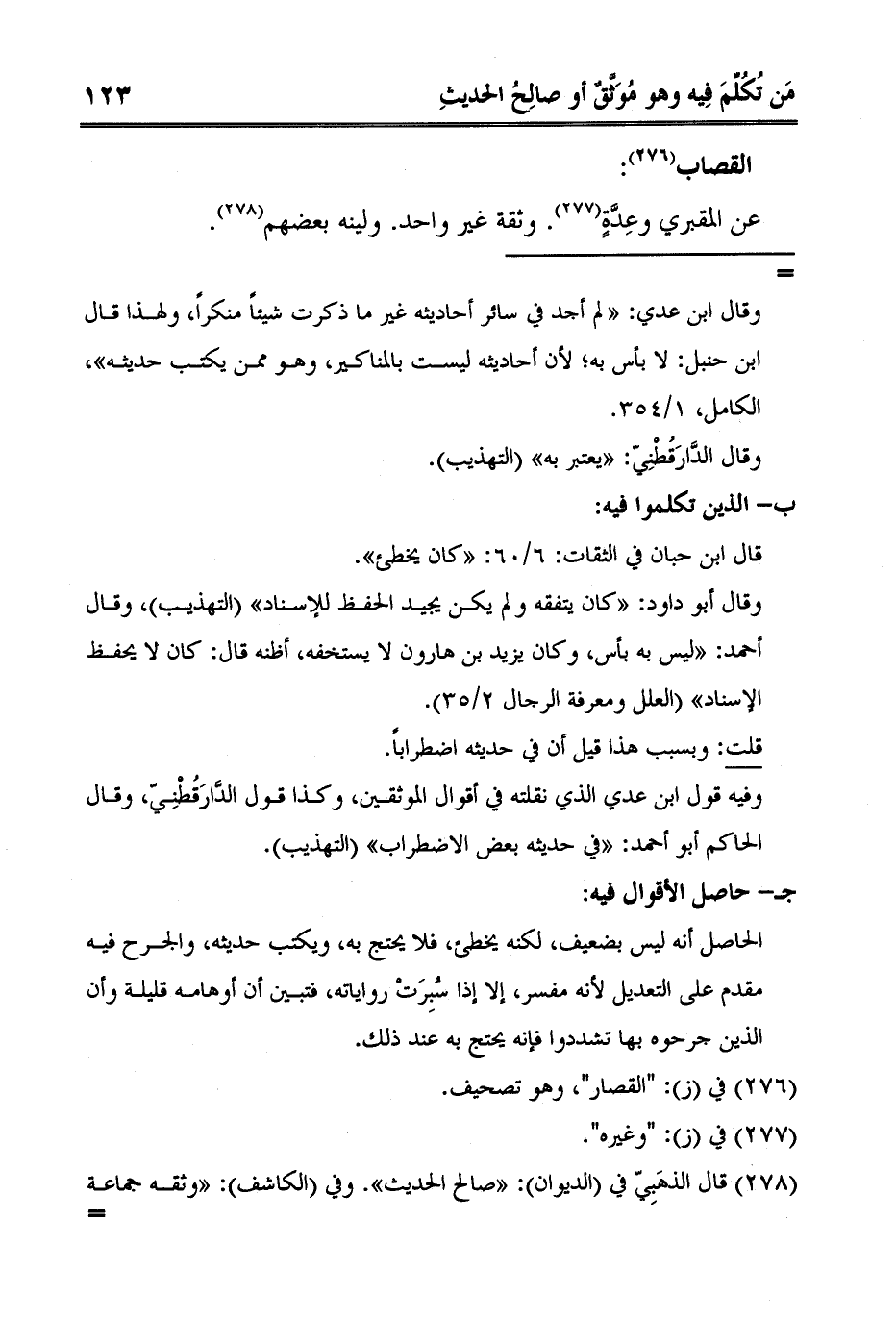 3 قال الذهَبِيّ في الديوان: «صالح الحديث» . وفي الكاشف: «وثقه جماعة وقد لين» . وفي المغني: «صدوق. قال أبو حاتم: لا يحتج به» . وفي الميزان ذكر الأقوال فيه فقط.