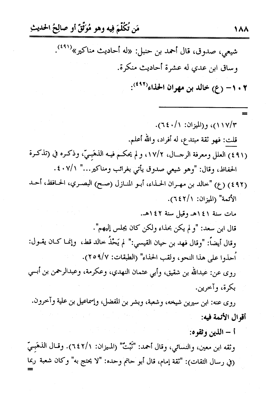 2 ع "خالد بن مهران الحذاء، أبو المنازل صح البصري، الحافظ، أحد الأئمة" الميزان: 1/642.