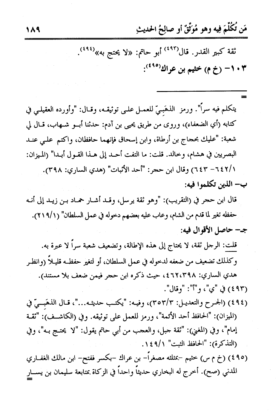 3 خ م س خثيم -بمثلثه مصغراً- بن عراك -بكسر ففتح- ابن مالك الغفاري المدني صح. أخرج له البخاري حديثاً واحداً في الزكاة بمتابعة سليمان بن يسار له كما في هدي الساري.