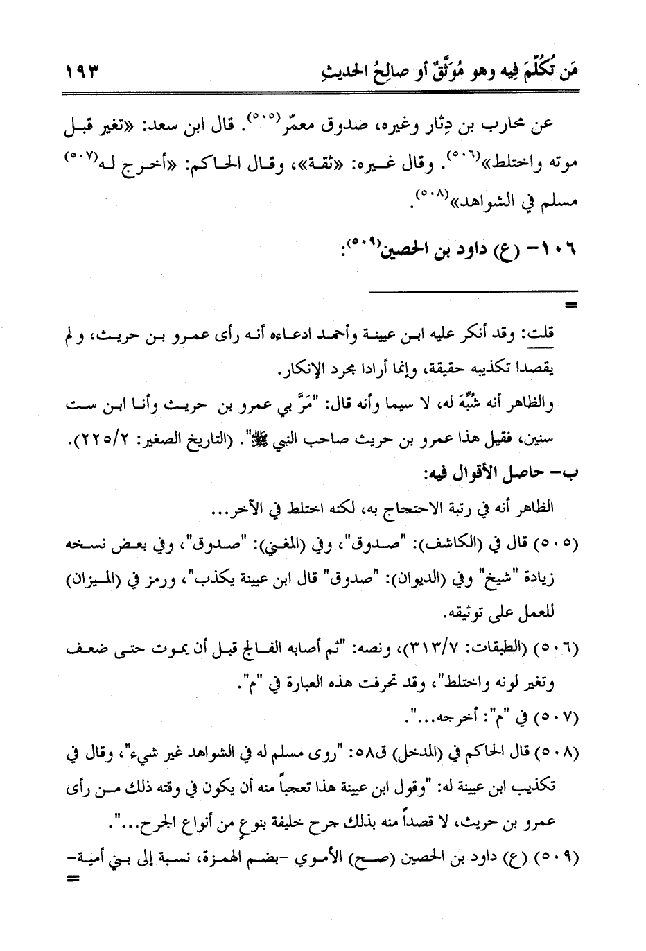 4 قال الحاكم في المدخل ق58: "روى مسلم له في الشواهد غير شيء"، وقال في تكذيب ابن عيينة له: "وقول ابن عيينة هذا تعجباً منه أن يكون في وقته ذلك من رأى عمرو بن حريث، لا قصداً منه بذلك جرح خليفة بنوعٍ من أنواع الجرح ... ".