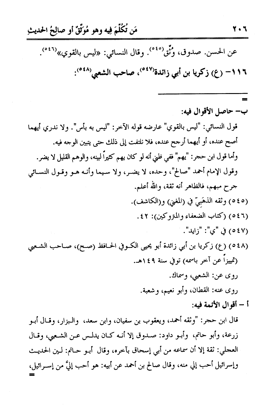 2 ع زكريا بن أبي زائدة أبو يحيى الكوفي الحافظ صح، صاحب الشعبي تمييزاً عن آخر باسمه توفي سنة 149هـ.