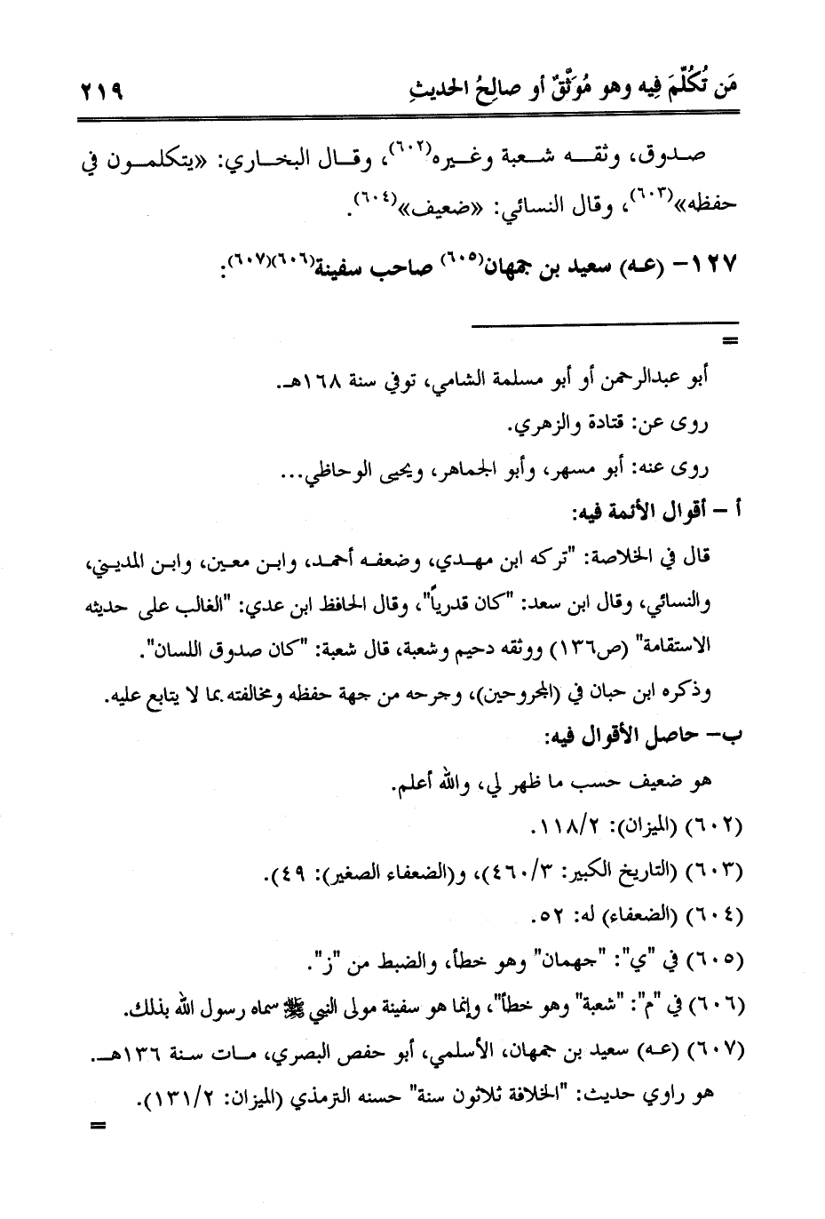 6 عه سعيد بن جمهان، الأسلمي، أبو حفص البصري، مات سنة 136هـ. هو راوي حديث: "الخلافة ثلاثون سنة" حسنه الترمذي الميزان: 2/131. روى عن: سفينة مولى النبي صلى الله عليه وسلم، وعبد الله بن أبي أوفى.
