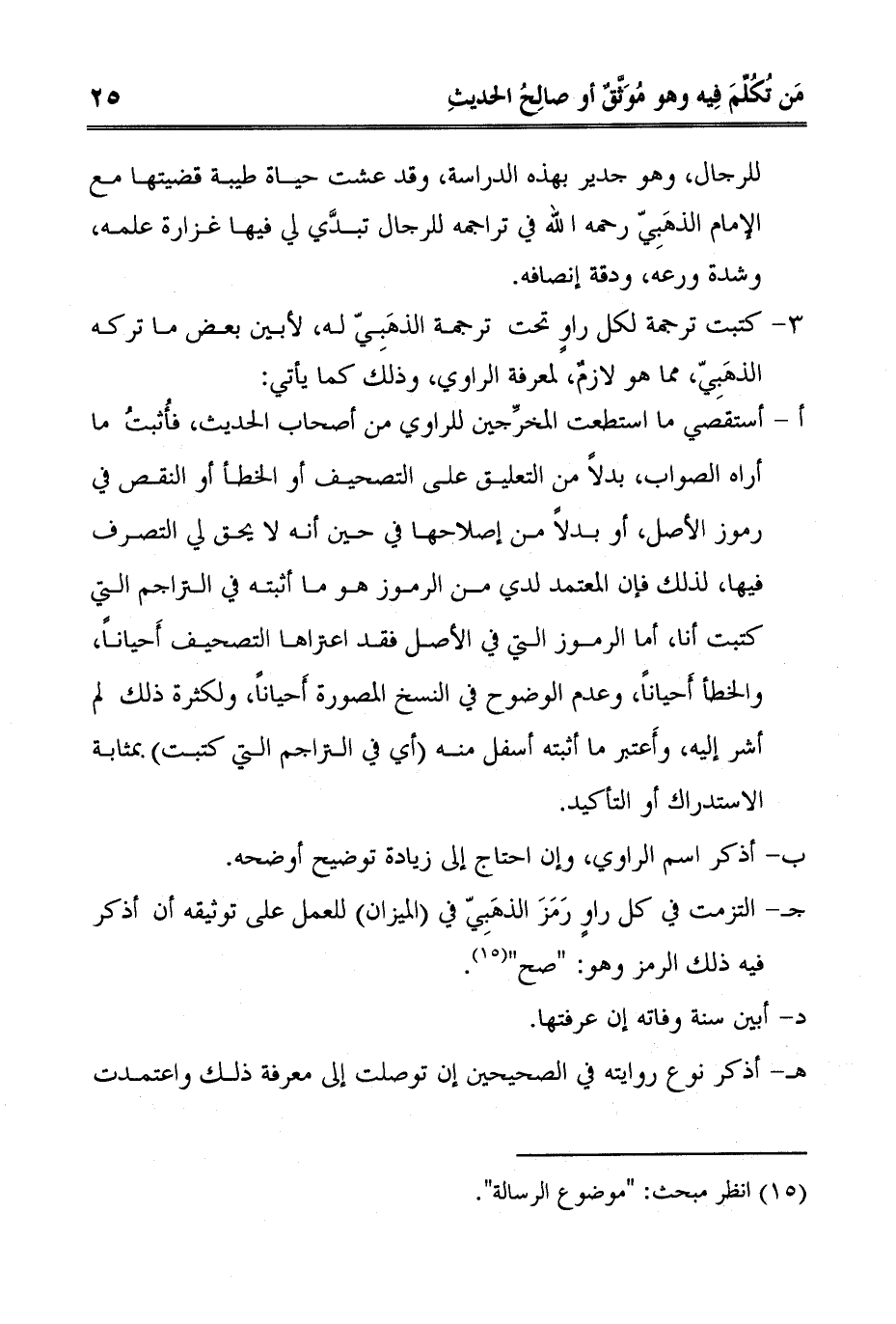 جـ- التزمت في كل راوٍ رَمَزَ الذهَبِيّ في "الميزان" للعمل على توثيقه أن أذكر فيه ذلك الرمز وهو: "صح""1".