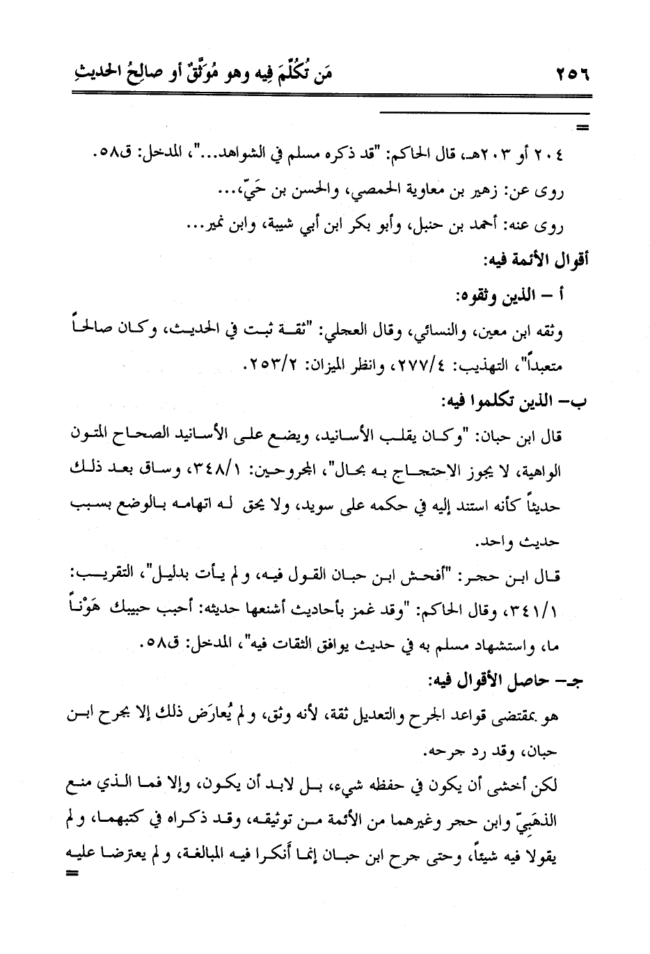 لكن أخشى أن يكون في حفظه شيء، بل لابد أن يكون، وإلا فما الذي منع الذهَبِيّ وابن حجر وغيرهما من الأئمة من توثيقه، وقد ذكراه في كتبهما، ولم يقولا فيه شيئاً، وحتى جرح ابن حبان إنما أَنكرا فيه المبالغة، ولم يعترضا عليه =