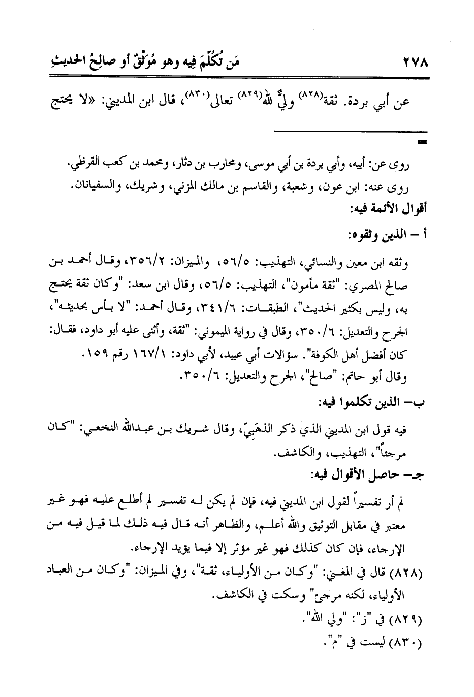 1 قال في المغني: "وكان من الأولياء، ثقة"، وفي الميزان: "وكان من العباد الأولياء، لكنه مرجئ" وسكت في الكاشف.
