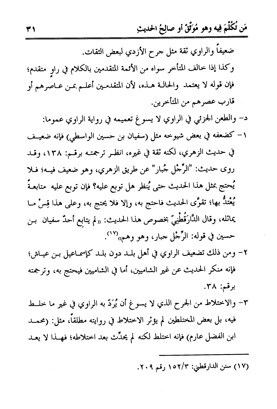 د- والطعن الجزئي في الراوي لا يسوغ تعميمه في رواية الراوي عموما:
