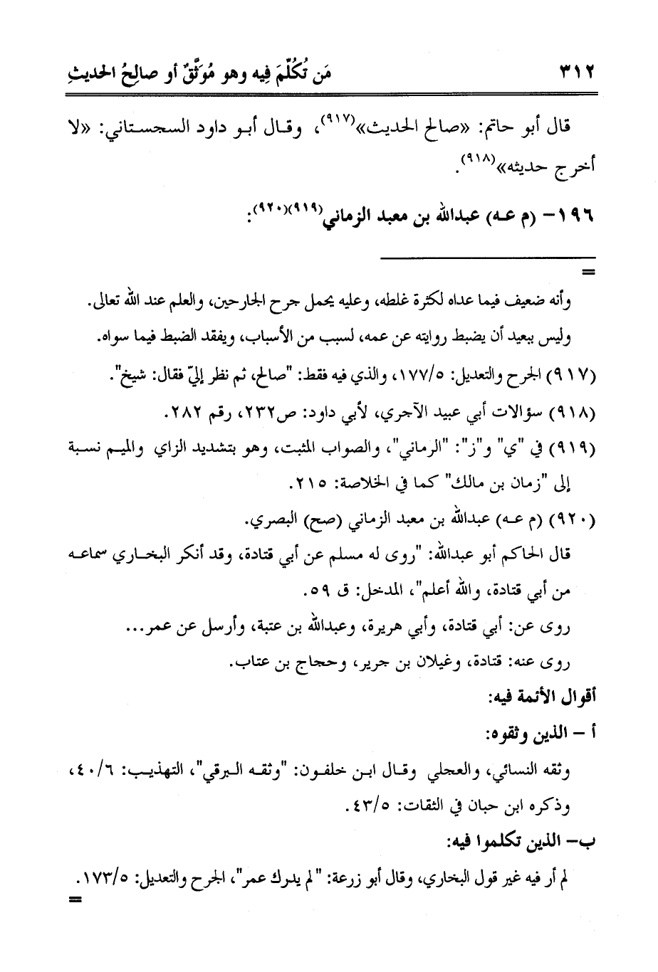 3 في "ي" و"ز": "الرماني"، والصواب المثبت، وهو بتشديد الزاي والميم نسبة إلى "زمان بن مالك" كما في الخلاصة: 215.