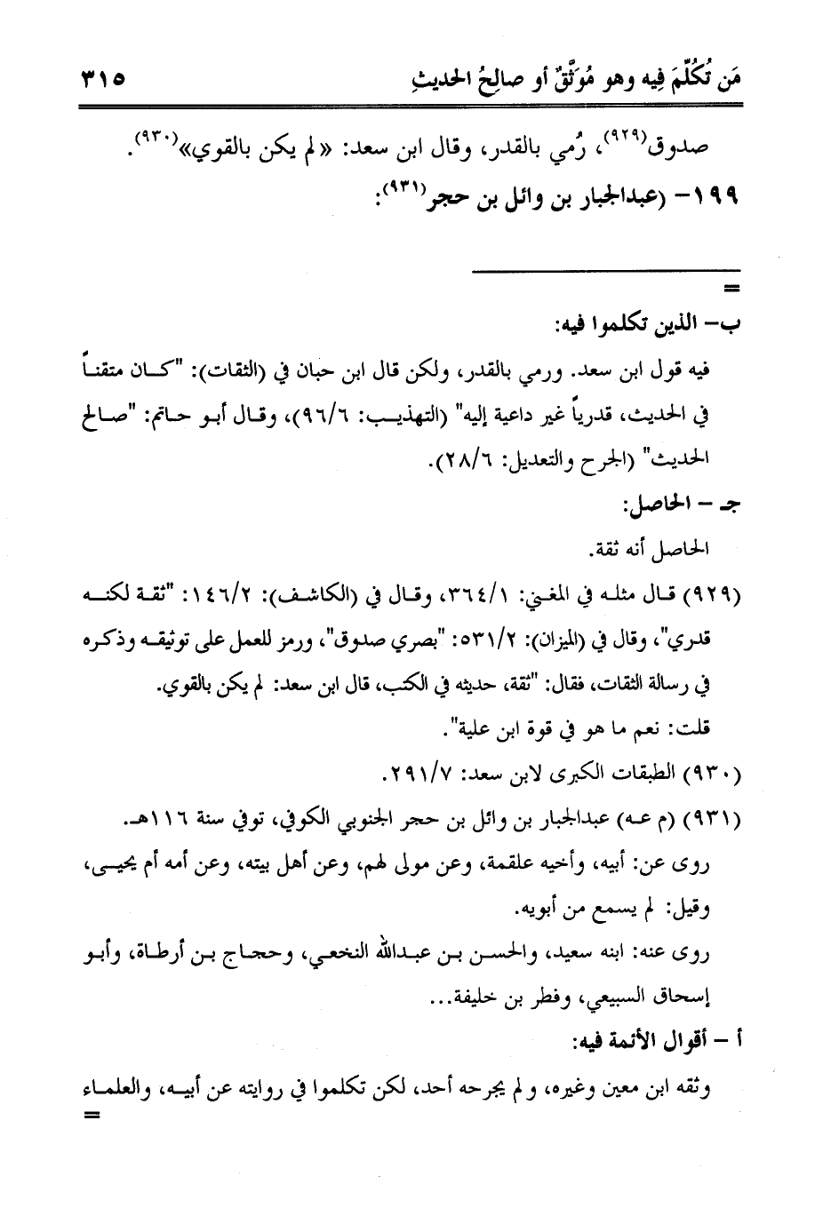 1 قال مثله في المغني: 1/364، وقال في الكاشف: 2/146: "ثقة لكنه قدري"، وقال في الميزان: 2/531: "بصري صدوق"، ورمز للعمل على توثيقه وذكره في رسالة الثقات، فقال: "ثقة، حديثه في الكتب، قال ابن سعد: لم يكن بالقوي.