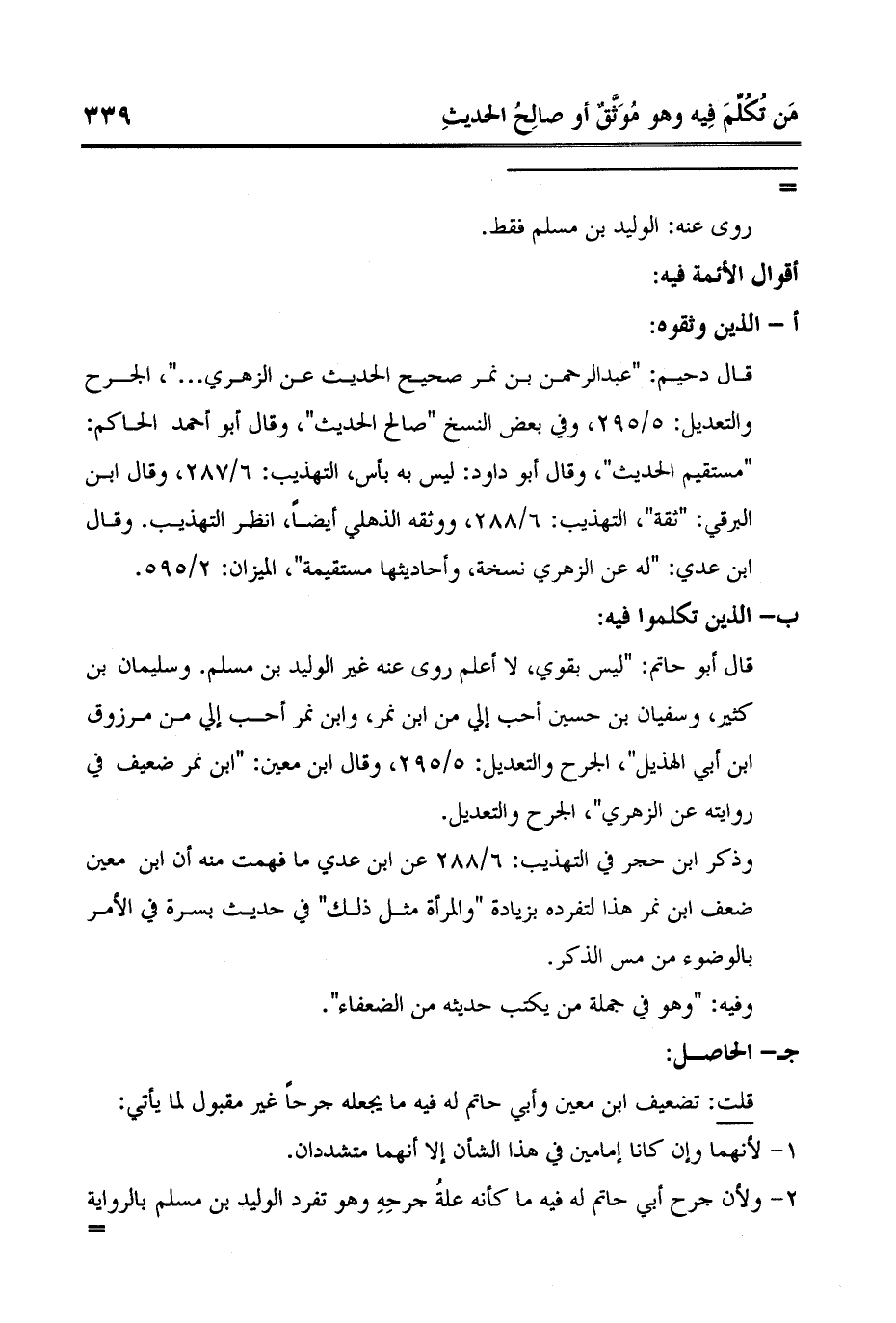 2- ولأن جرح أبي حاتم له فيه ما كأنه علةُ جرحِهِ وهو تفرد الوليد بن مسلم بالرواية =