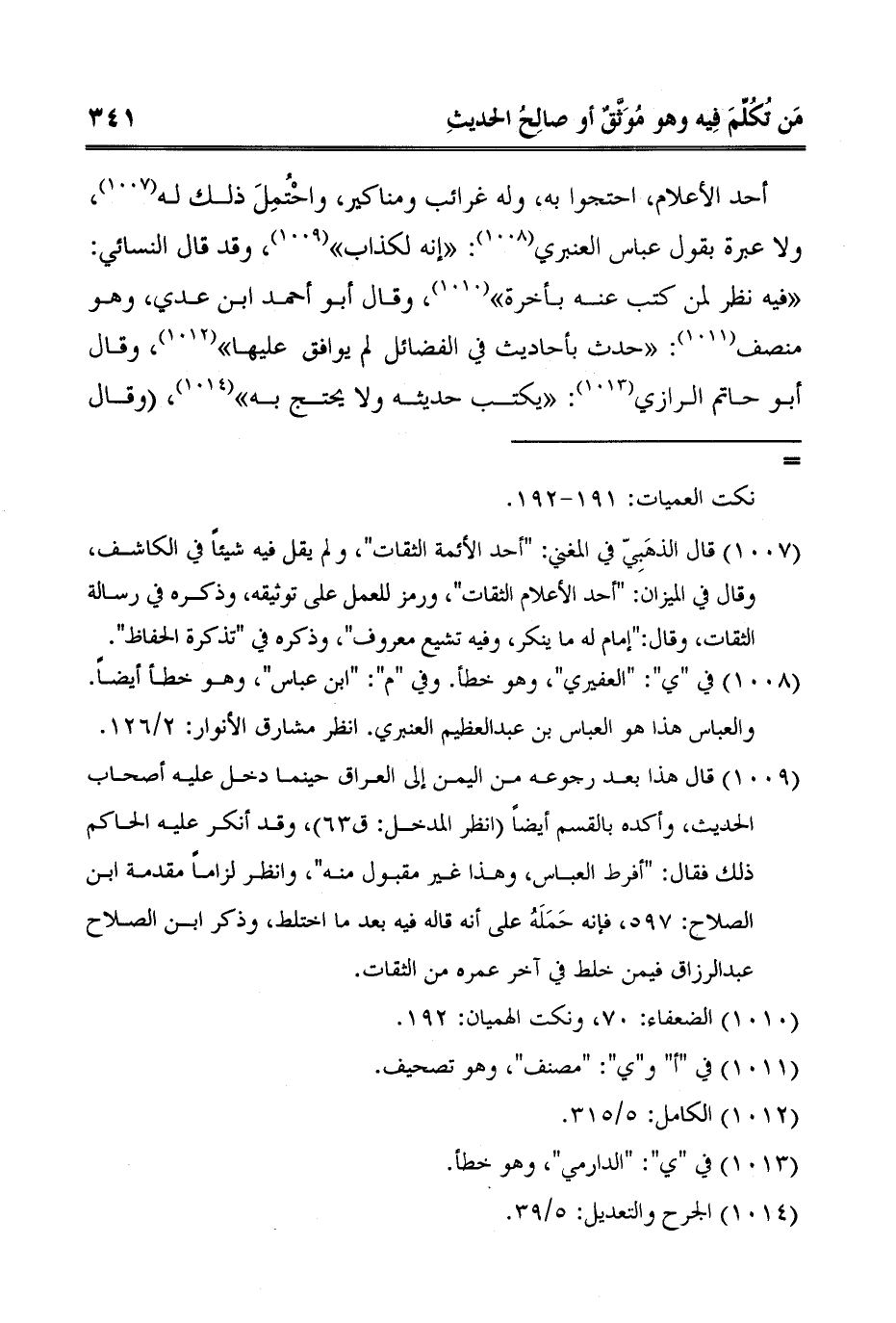 1 قال الذهَبِيّ في المغني: "أحد الأئمة الثقات"، ولم يقل فيه شيئاً في الكاشف، وقال في الميزان: "أحد الأعلام الثقات"، ورمز للعمل على توثيقه، وذكره في رسالة الثقات، وقال:"إمام له ما ينكر، وفيه تشيع معروف"، وذكره في "تذكرة الحفاظ".
