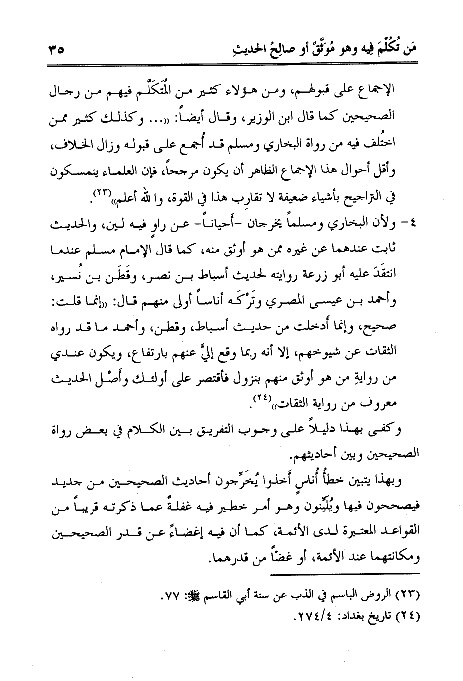 وكفى بهذا دليلاً على وجوب التفريق بين الكلام في بعض رواة الصحيحين وبين أحاديثهم.