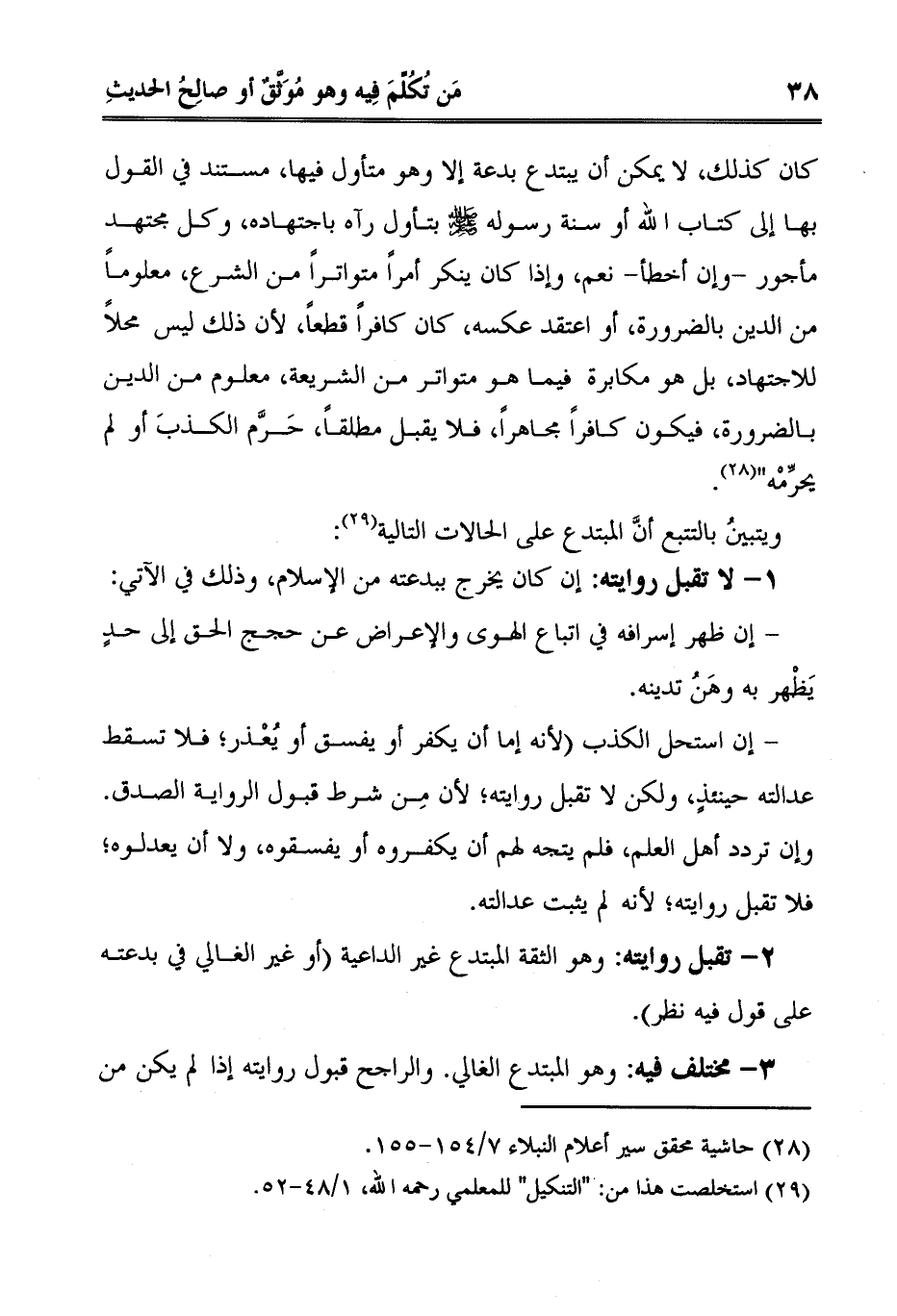 2- تقبل روايته: وهو الثقة المبتدع غير الداعية "أو غير الغالي في بدعته على قول فيه نظر".