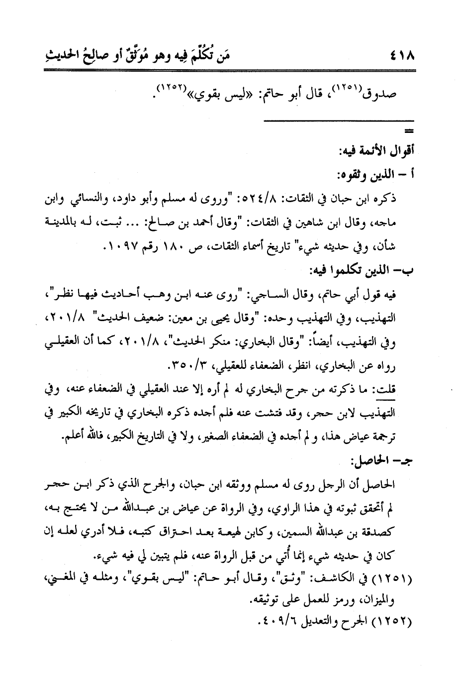 1 في الكاشف: "وثق"، وقال أبو حاتم: "ليس بقوي"، ومثله في المغني، والميزان، ورمز للعمل على توثيقه.