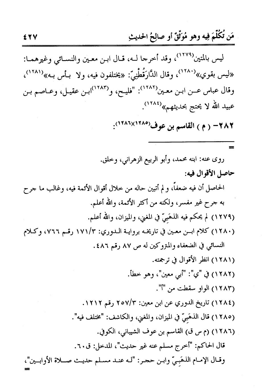 2 كلام ابن معين في تاريخه برواية الدوري: 3/171 رقم 766، وكلام النسائي في الضعفاء والمتروكين له ص 87 رقم 486.