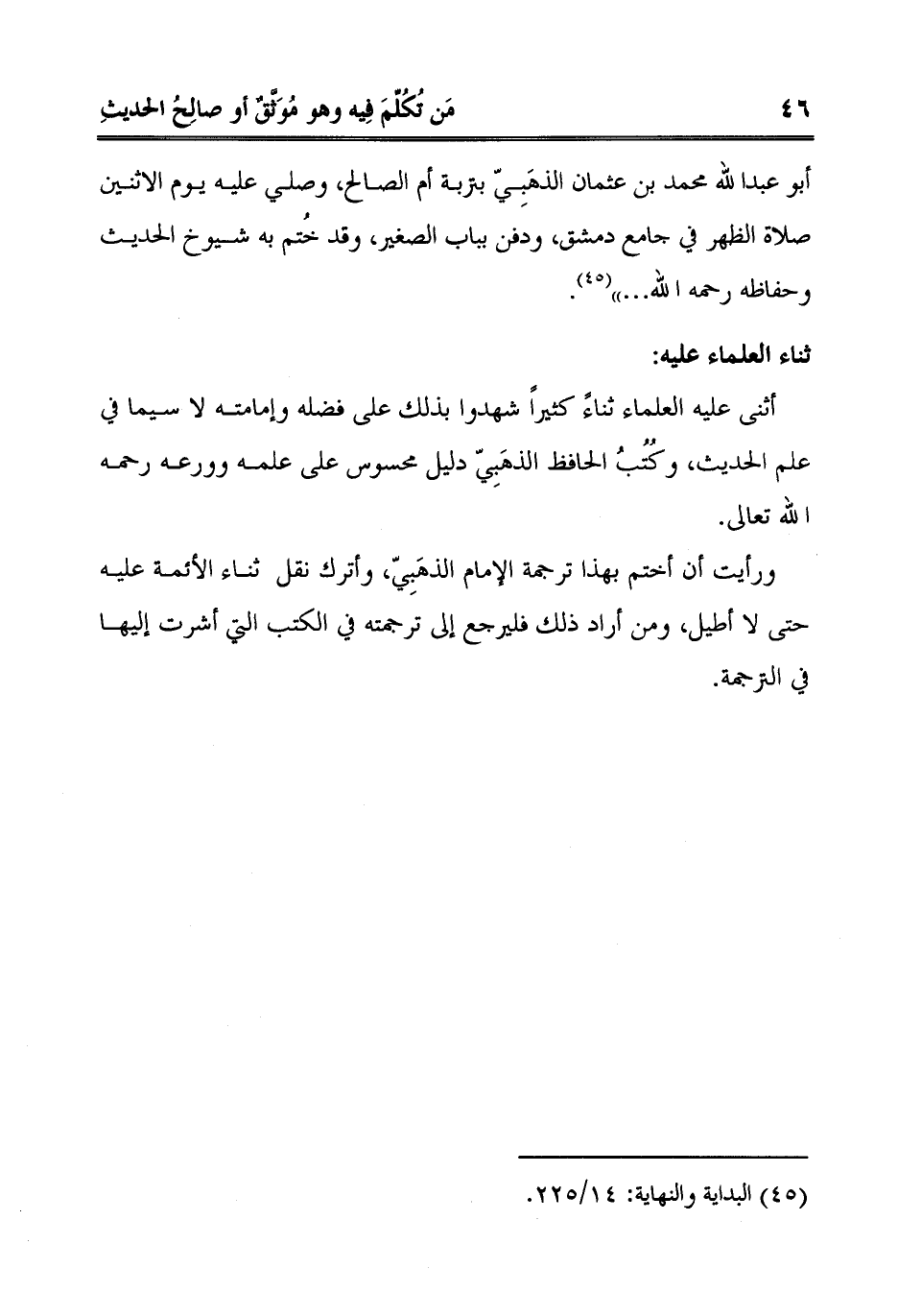 ورأيت أن أختم بهذا ترجمة الإمام الذهَبِيّ، وأترك نقل ثناء الأئمة عليه حتى لا أطيل، ومن أراد ذلك فليرجع إلى ترجمته في الكتب التي أشرت إليها في الترجمة.