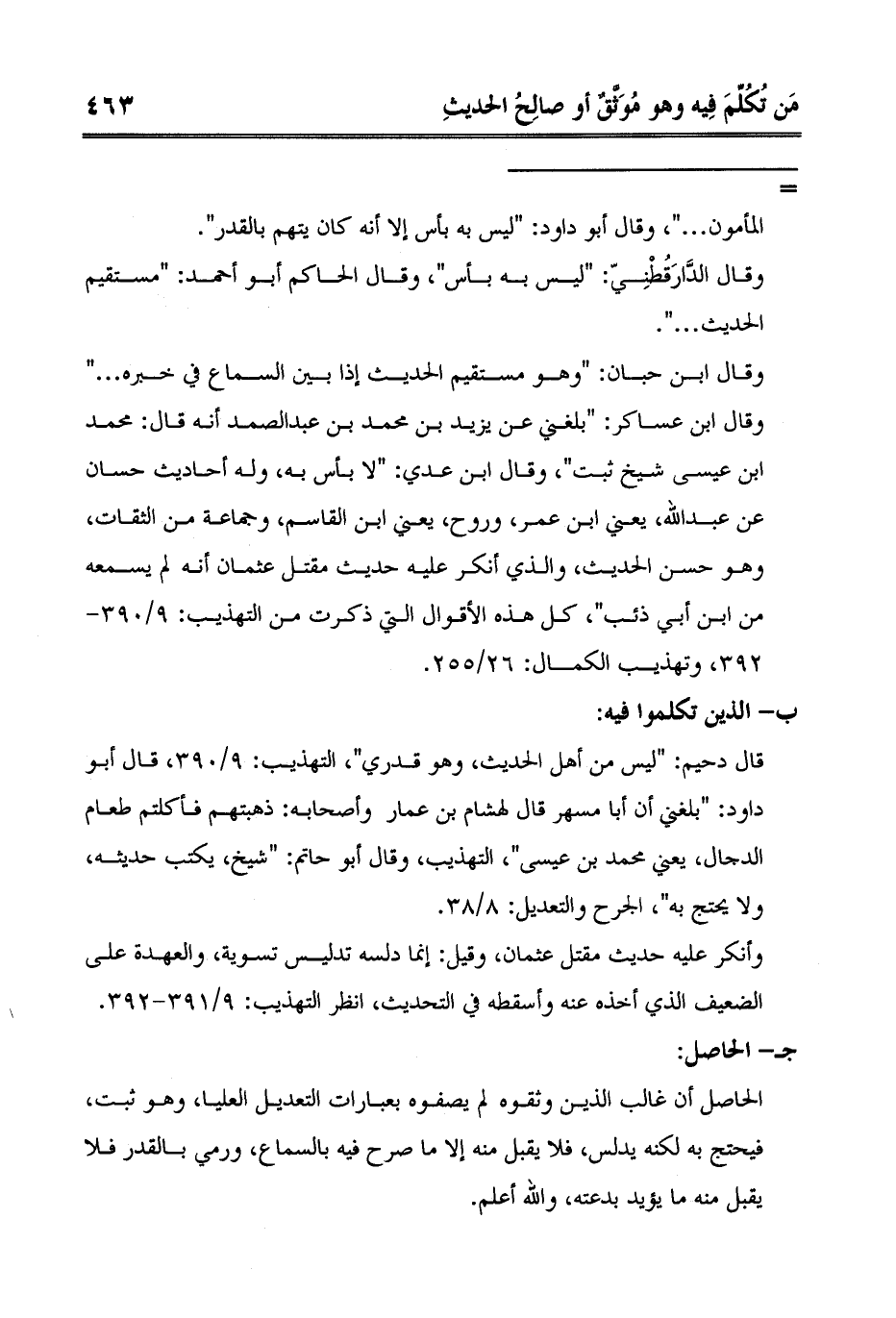 ابن عيسى شيخ ثبت"، وقال ابن عدي: "لا بأس به، وله أحاديث حسان عن عبد الله، يعني ابن عمر، وروح، يعني ابن القاسم، وجماعة من الثقات، وهو حسن الحديث، والذي أنكر عليه حديث مقتل عثمان أنه لم يسمعه من ابن أبي ذئب"، كل هذه الأقوال التي ذكرت من التهذيب: 9/390-392، وتهذيب الكمال: 26/255.