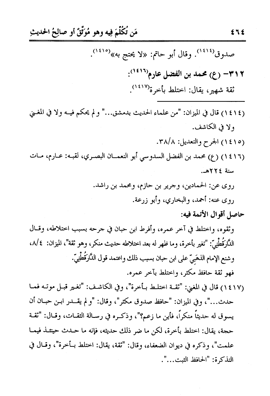 وثقوه، واختلط في آخر عمره، وأفرط ابن حبان في جرحه بسبب اختلاطه، وقال الدَّارَقُطْنِيّ: "تغير بأخرة، وما ظهر له بعد اختلاطه حديث منكر، وهو ثقة"، الميزان: 4/8، وشنع الإمام الذهَبِيّ على ابن حبان بسبب ذلك واعتمد قول الدَّارَقُطْنِيّ.