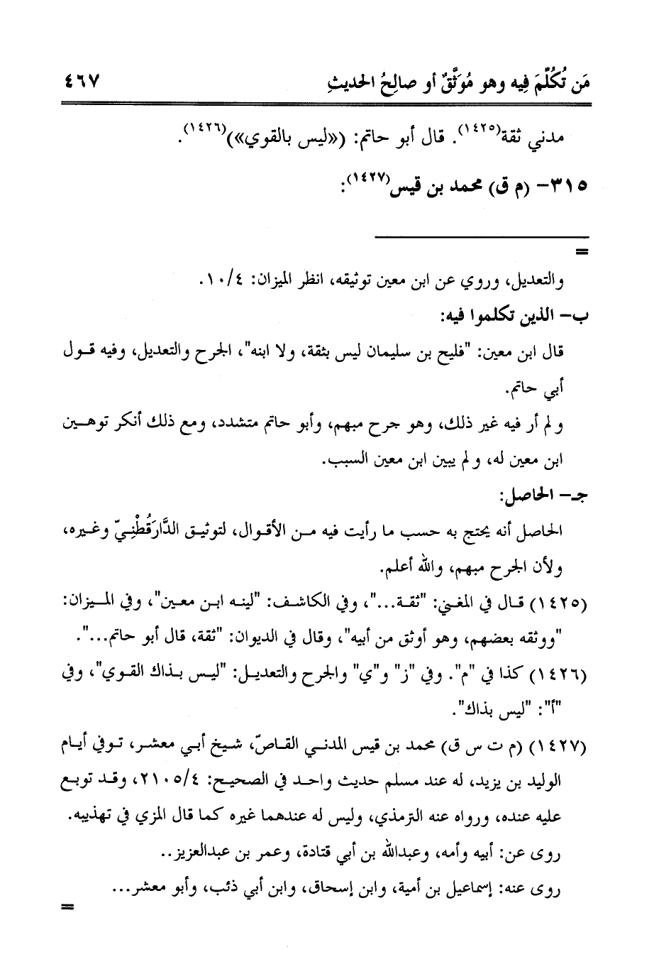 قال ابن معين: "فليح بن سليمان ليس بثقة، ولا ابنه"، الجرح والتعديل، وفيه قول أبي حاتم.