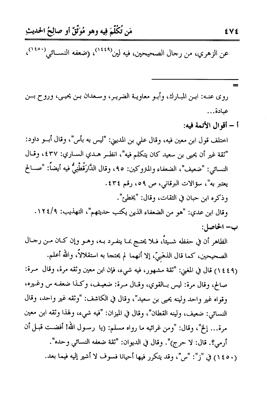 اختلف قول ابن معين فيه، وقال علي بن المديني: "ليس به بأس"، وقال أبو داود: "ثقة غير أن يحيى بن سعيد كان يتكلم فيه"، انظر هدي الساري: 437، وقال النسائي: "ضعيف"، الضعفاء والمتروكين: 95، وقال الدَّارَقُطْنِيُّ فيه أيضاً: "صالح يعتبر به"، سؤالات البرقاني، ص 59، رقم 434.