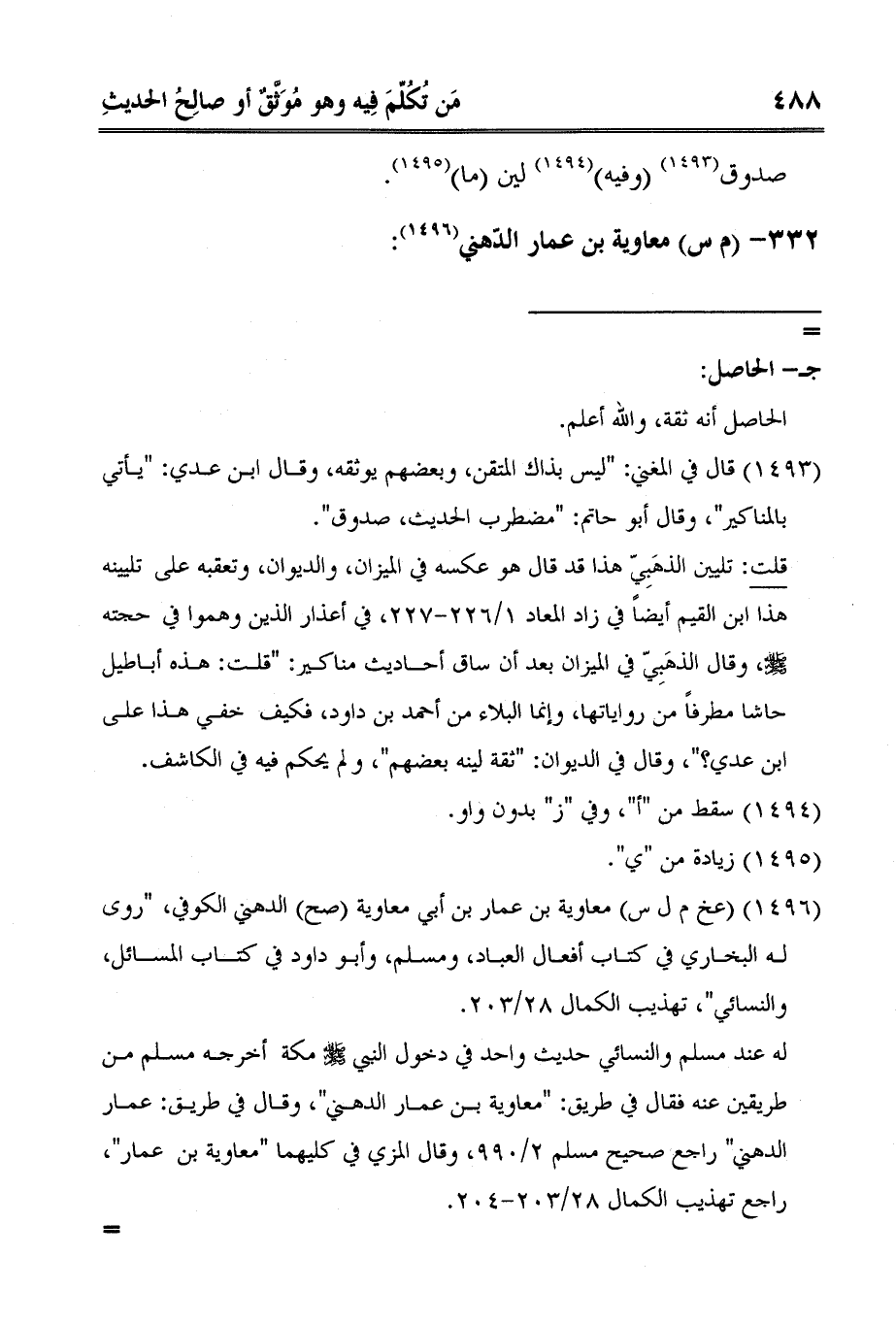 4 عخ م ل س معاوية بن عمار بن أبي معاوية صح الدهني الكوفي، "روى له البخاري في كتاب أفعال العباد، ومسلم، وأبو داود في كتاب المسائل، والنسائي"، تهذيب الكمال 28/203.