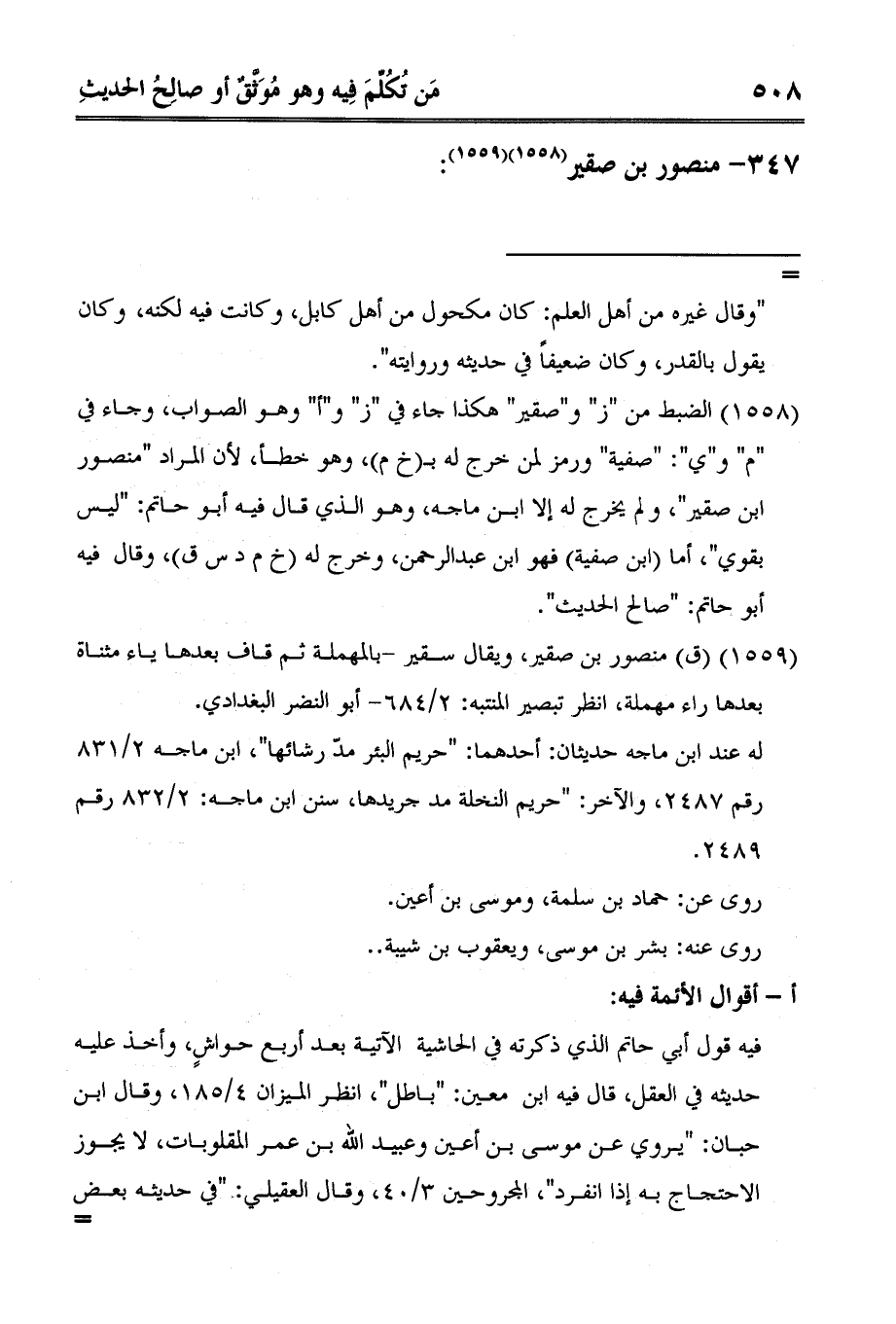 1 الضبط من "ز" و"صقير" هكذا جاء في "ز" و"أ" وهو الصواب، وجاء في "م" و"ي": "صفية" ورمز لمن خرج له بخ م، وهو خطأ، لأن المراد "منصور