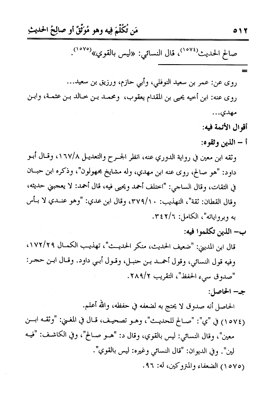 1 في "ي": "صالح للحديث"، وهو تصحيف، قال في المغني: "وثقه ابن معين"، وقال النسائي: ليس بالقوي، وقال د: "هو صالح"، وفي الكاشف: "فيه لين". وفي الديوان: "قال النسائي وغيره: ليس بالقوي".