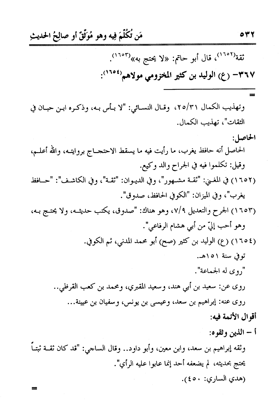 2 الجرح والتعديل 9/7، وهو هناك: "صدوق، يكتب حديثه، ولا يحتج به، وهو أحب إليّ من أبي هشام الرفاعي".