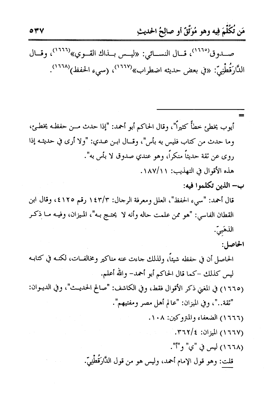 = أيوب يخطئ خطأً كثيراً"، وقال الحاكم أبو أحمد: "إذا حدث من حفظه يخطئ، وما حدث من كتاب فليس به بأس"، وقال ابن عدي: "ولا أرى في حديثه إذا روى عن ثقة حديثاً منكراً، وهو عندي صدوق لا بأس به".