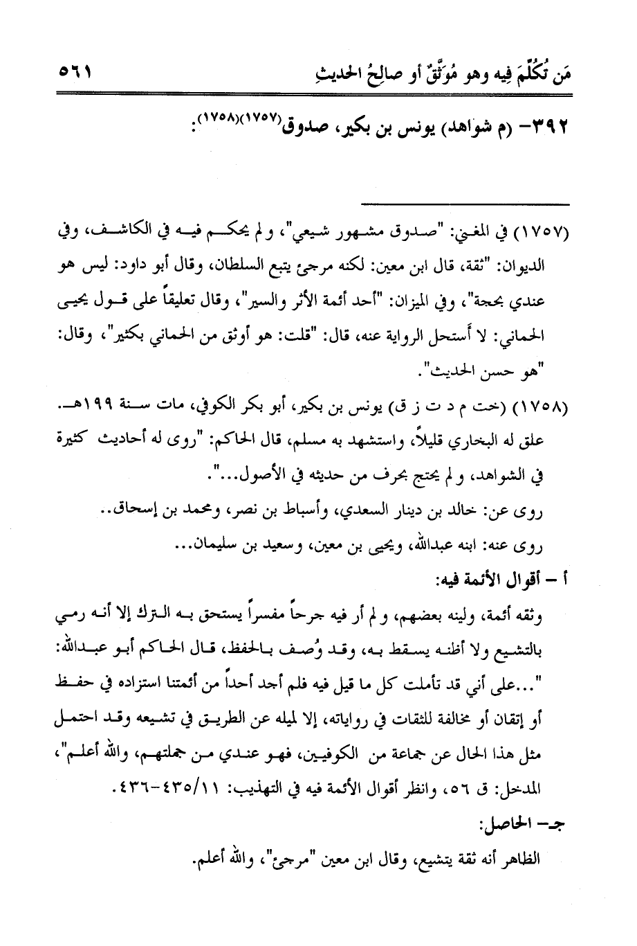 392- "م شواهد" يونس بن بكير، صدوق"1""2":