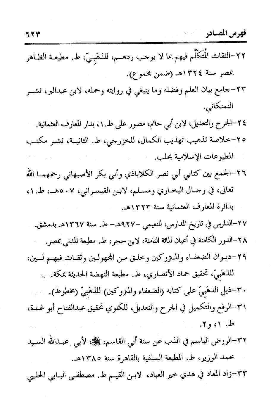 22-الثقات المُتَكَلَّم فيهم بما لا يوجب ردهم، للذهَبِيّ، ط. مطبعة الظاهر بمصر سنة 1324هـ "ضمن مجموع".