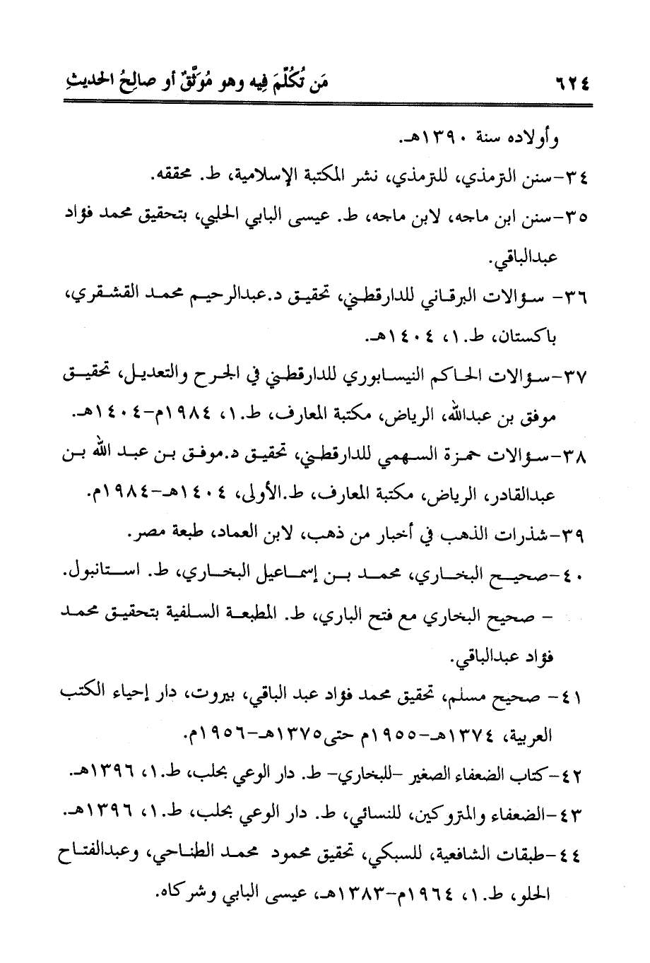 37- سؤالات الحاكم النيسابوري للدارقطني في الجرح والتعديل، تحقيق موفق بن عبد الله، الرياض، مكتبة المعارف، ط.1،1984م-1404هـ.