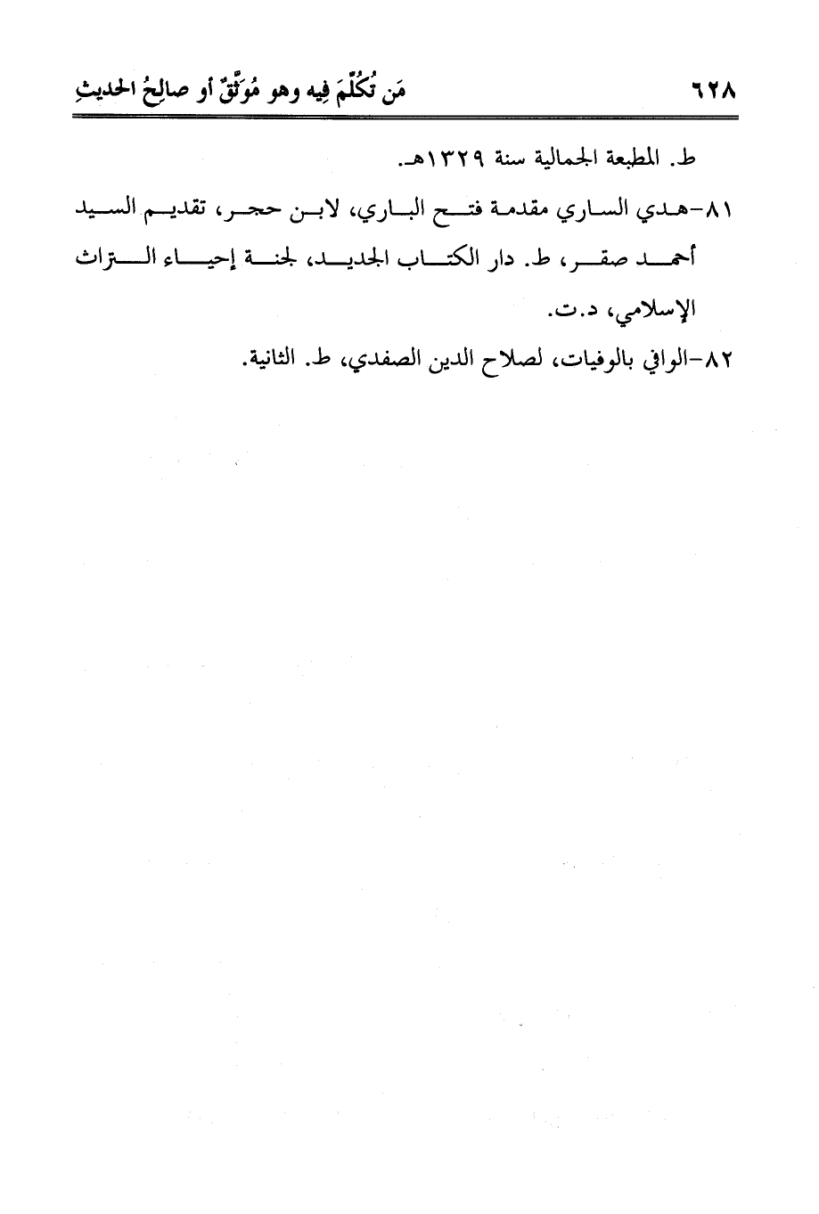 81- هدي الساري مقدمة فتح الباري، لابن حجر، تقديم السيد أحمد صقر، ط. دار الكتاب الجديد، لجنة إحياء التراث الإسلامي، د. ت.