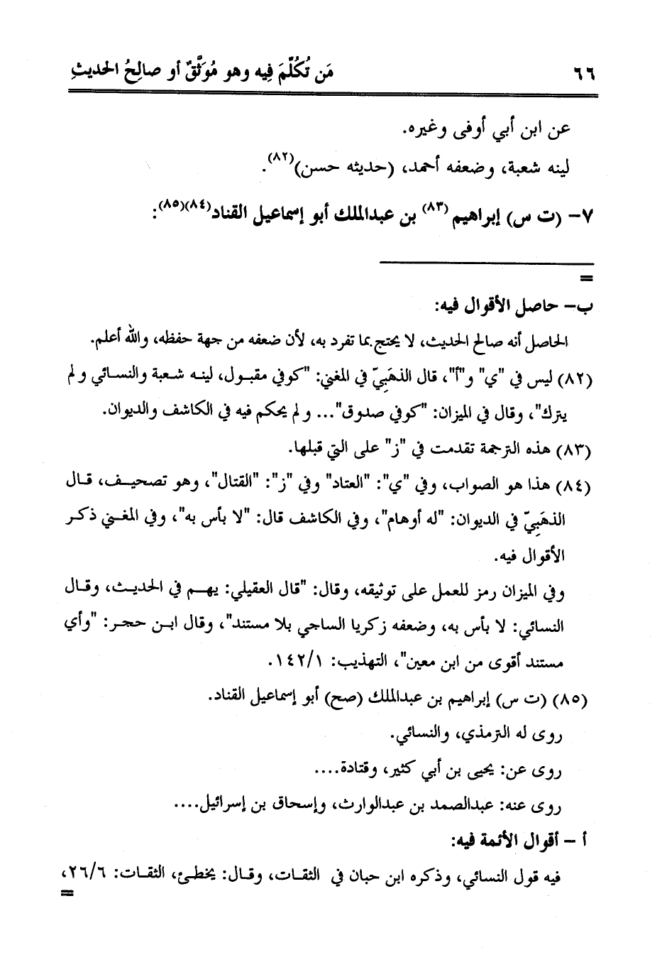 1 ليس في "ي" و"أ"، قال الذهَبِيّ في المغني: "كوفي مقبول، لينه شعبة والنسائي ولم يترك"، وقال في الميزان: "كوفي صدوق" ... ولم يحكم فيه في الكاشف والديوان.