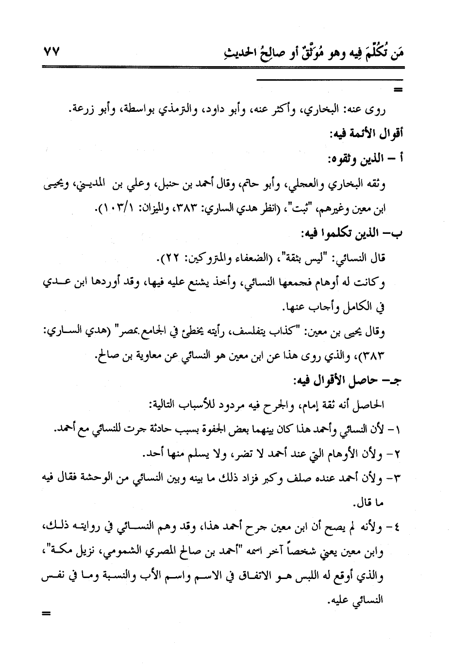 ابن معين وغيرهم، "ثبت"، انظر هدي الساري: 383، والميزان: 1/103.