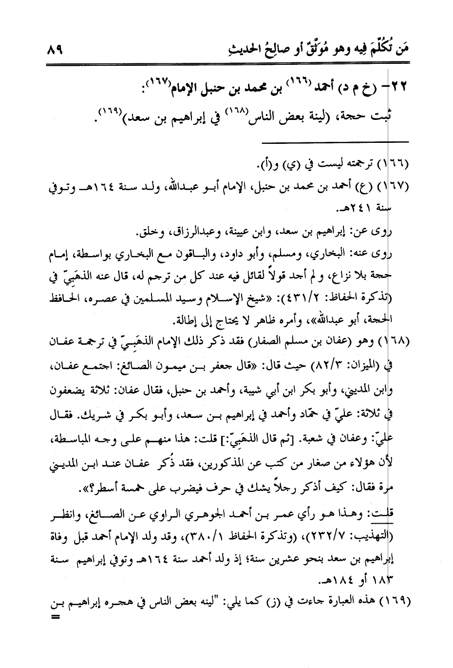 2 ع أحمد بن محمد بن حنبل، الإمام أبو عبد الله، ولد سنة 164هـ وتوفي سنة 241هـ.
