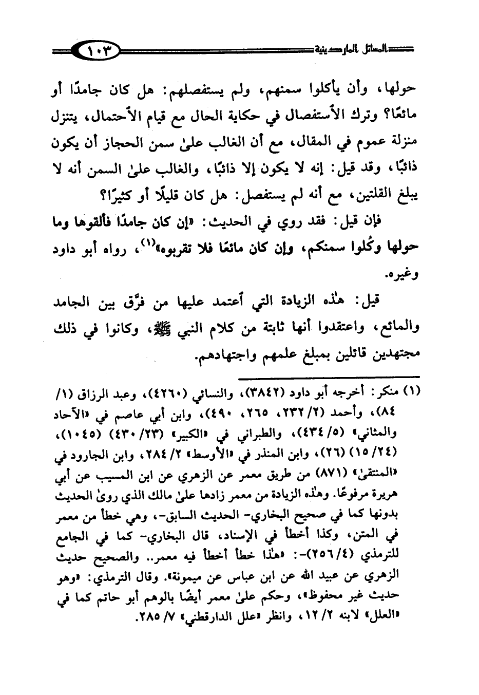 قيل: هذه الزيادة؛ التي أعتمد عليها من فرَّق بين الجامد والمائع، واعتقدوا أنها ثابتة من كلام النبي - صلى الله عليه وسلم -، وكانوا في ذلك مجتهدين قائلين بمبلغ علمهم واجتهادهم.