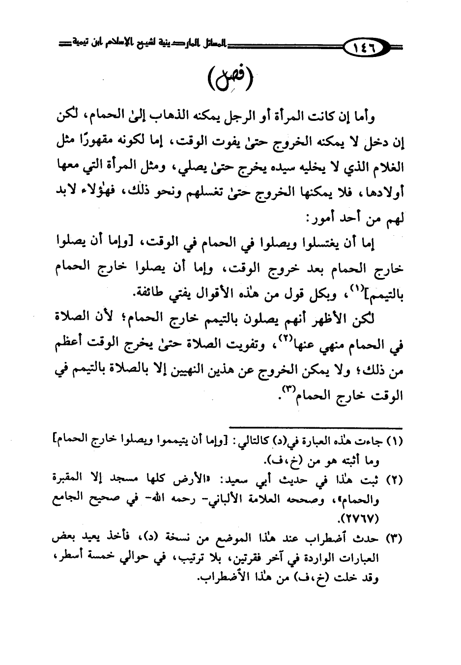 لكن الأظهر أنهم يصلون بالتيمم خارج الحمام؛ لأن الصلاة في الحمام منهي عنها (¬2)، وتفويت الصلاة حتى يخرج الوقت أعظم من ذلك؛ ولا يمكن الخروج عن هذين النهيين إلا بالصلاة بالتيمم في الوقت خارج الحمام (¬3).