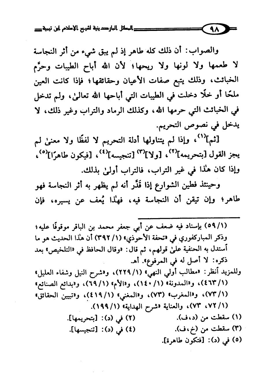 والصواب: أن ذلك كله طاهر إذ لم يبق شيء من أثر النجاسة لا طعمها ولا لونها ولا ريحها؛ لأن الله أباح الطيبات وحرَّم الخبائث، وذلك يتبع صفات الأعيان وحقائقها؛ فإذا كانت العين ملحًا أو خلًا دخلت في الطيبات التي أباحها الله تعالى، ولم تدخل في الخبائث التي حرمها الله، وكذلك الرماد والتراب وغير ذلك، لا يدخل في نصوص التحريم.