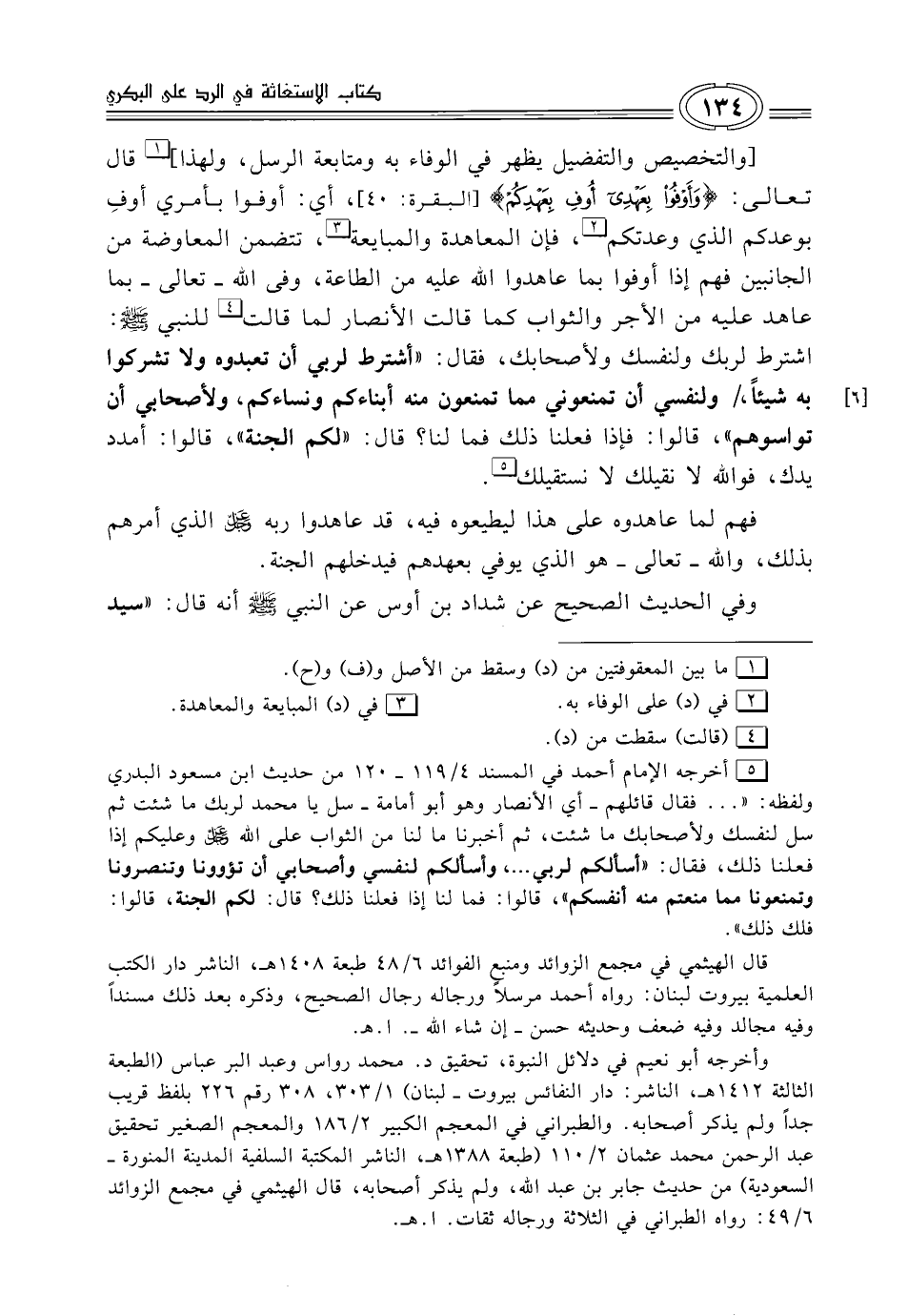 (¬5) أخرجه الإمام أحمد في المسند 4/ 119 - 120 من حديث ابن مسعود البدري ولفظه: " ... فقال قائلهم -أي الأنصار وهو أبو أمامة- سل يا محمد لربك ما شئت ثم سل لنفسك ولأصحابك ما شئت، ثم أخبرنا ما لنا من الثواب على الله -عز وجل- وعليكم إذا فعلنا ذلك، فقال: "أسالكم لربي ... ، وأسالكم لنفسي وأصحابي أن تؤوونا وتنصرونا وتمنعونا مما منعتم منه أنفسكم"، قالوا: فما لنا إذا فعلنا ذلك؟ قال: لكم الجنة، قالوا: فلك ذلك".