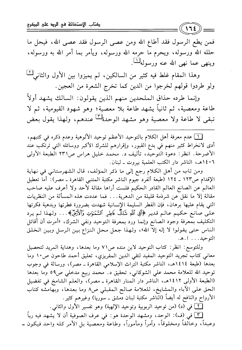 (¬1) عدم معرفة أهل الكلام بالتوحيد الأعظم توحيد الألوهية وعدم ذكره في كتبهم، أدى لانخراط كثير منهم في بدع القبور، وإقرارهم للشرك الأكبر ووسائله الّتي ترتكب عند الأشرحة. انظر: دعوة التّوحيد، تأليف د. مححمد خليل هراس ص 231 الطبعة الأولى 1406 هـ، الناشر دار الكتب العلمية بيروت - لبنان.