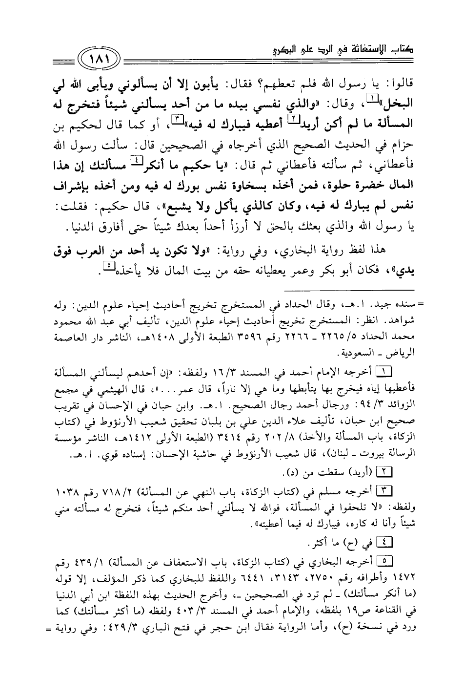 (¬5) أخرجه البخاريّ في (كتاب الزَّكاة، باب الاستعفاف عن المسألة) 1/ 439 رقم 1472 وأطرافه رقم 2750، 3143، 6441 واللفظ للبخاري كما ذكر المؤلِّف، إِلَّا قوله (ما أنكر مسألتك) -لم ترد في الصحيحين-، وأخرج الحديث لهذه اللفظة ابن أبي الدنيا في القناعة ص 19 بلفظه، والإمام أحمد في المسند 3/ 403 ولفظه (ما أكثر مسألتك) كما ورد في نسخة (ح)، وأمّا الرِّواية فقال ابن حجر في فتح الباري 3/ 429: وفي رواية =