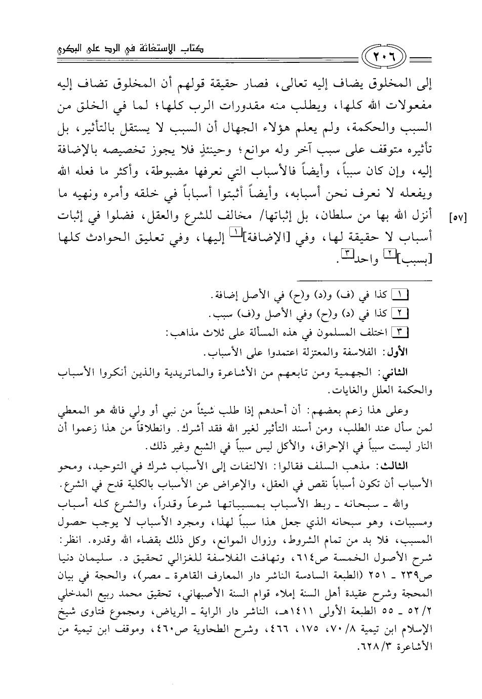 الأول: الفلاسفة والمعتزلة اعتمدوا على الأسباب.